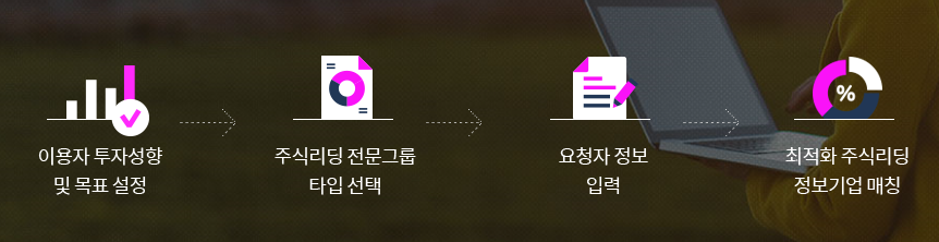 혼자 시작을하려하니 주식에 대해 아무것도 몰라 걱정이고 주식투자 리딩기업에 맡기려니 어떤 업체가 좋을지 몰라 고민만 하고계시는 분들을 위해 모멘텀플라이에서는 신청자에게 가장 알맞는 리딩기업을 매칭시켜드립니다.