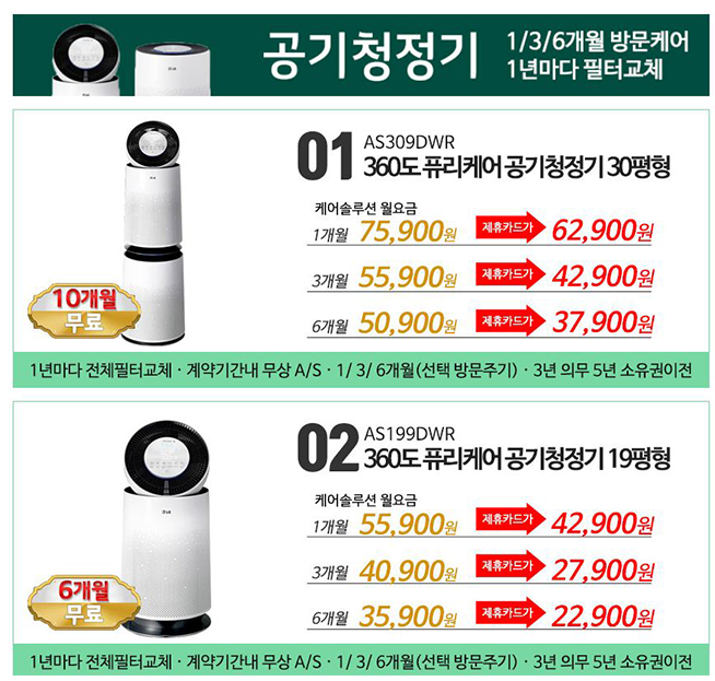 6개월 무료 : 3,13,25,37,49,60개월차 (AS199DWR 모델)