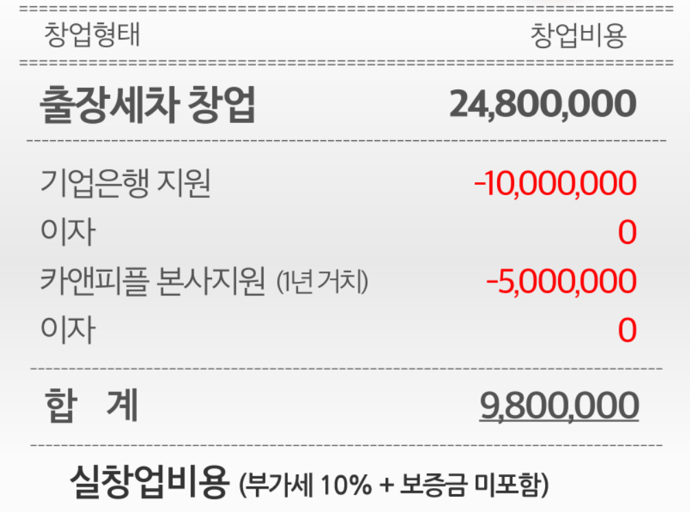 하지만, 카앤피플은 본사의 창업 지원 서비스로 980만원의 금액대로 창업에 도전할 수 있습니다.