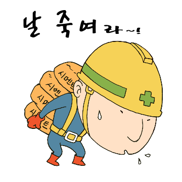곰방. 무거운 벽돌을 나르는(양중) 표현